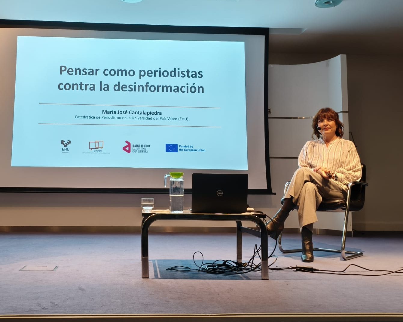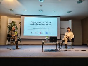La catedrática de Periodismo e investigadora principal de Bitartez, María José Cantalapiedra, ha ofrecido una conferencia en Vitoria-Gasteiz donde ha puesto en valor el conocimiento periodístico como antídoto frente a la desinformación. Durante su ponencia, conducida por la periodista Raquel Ecenarro, la profesora Cantalapiedra presentó sencillos pasos del método periodístico para hacer frente a los bulos, entre ellos verificar la información, analizar su precisión a través de las 5W, distinguir entre emisor y fuente, y separar claramente los hechos de las opiniones.